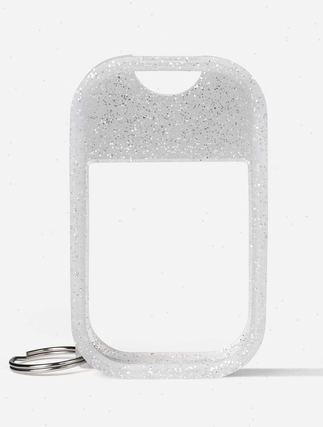 Bring a touch of sparkle wherever you go with this clear, silver-glitter Hand Mist Case. Carry it or clip it like a charm, and treat yourself whenever you want.